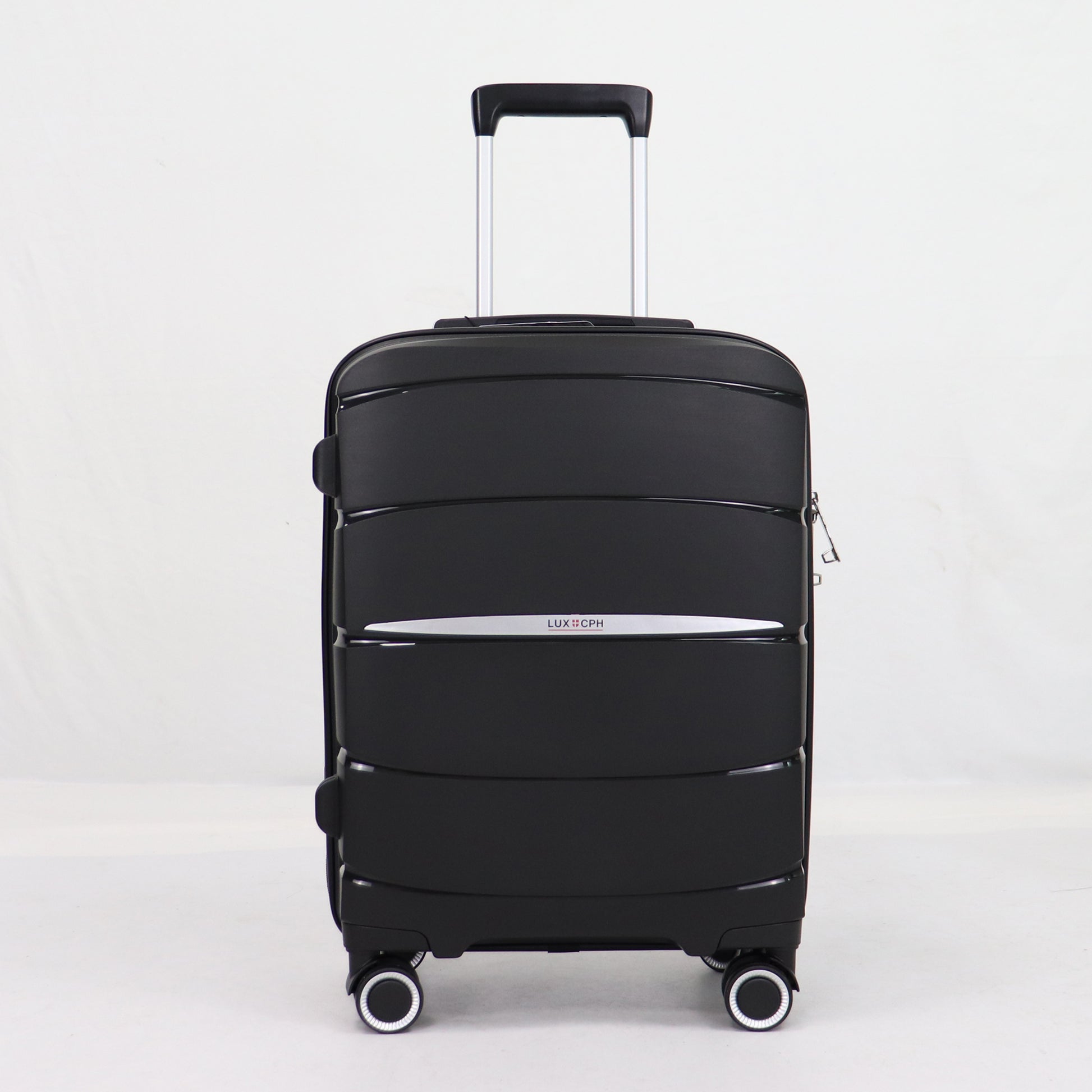 Alle kufferter er lavet i slagfast PP-materiale og har forstærkede hjul med lydløse kuglelejer, forstærket teleskophåndtag i aluminium og slidstærke YKK-lynlåse.