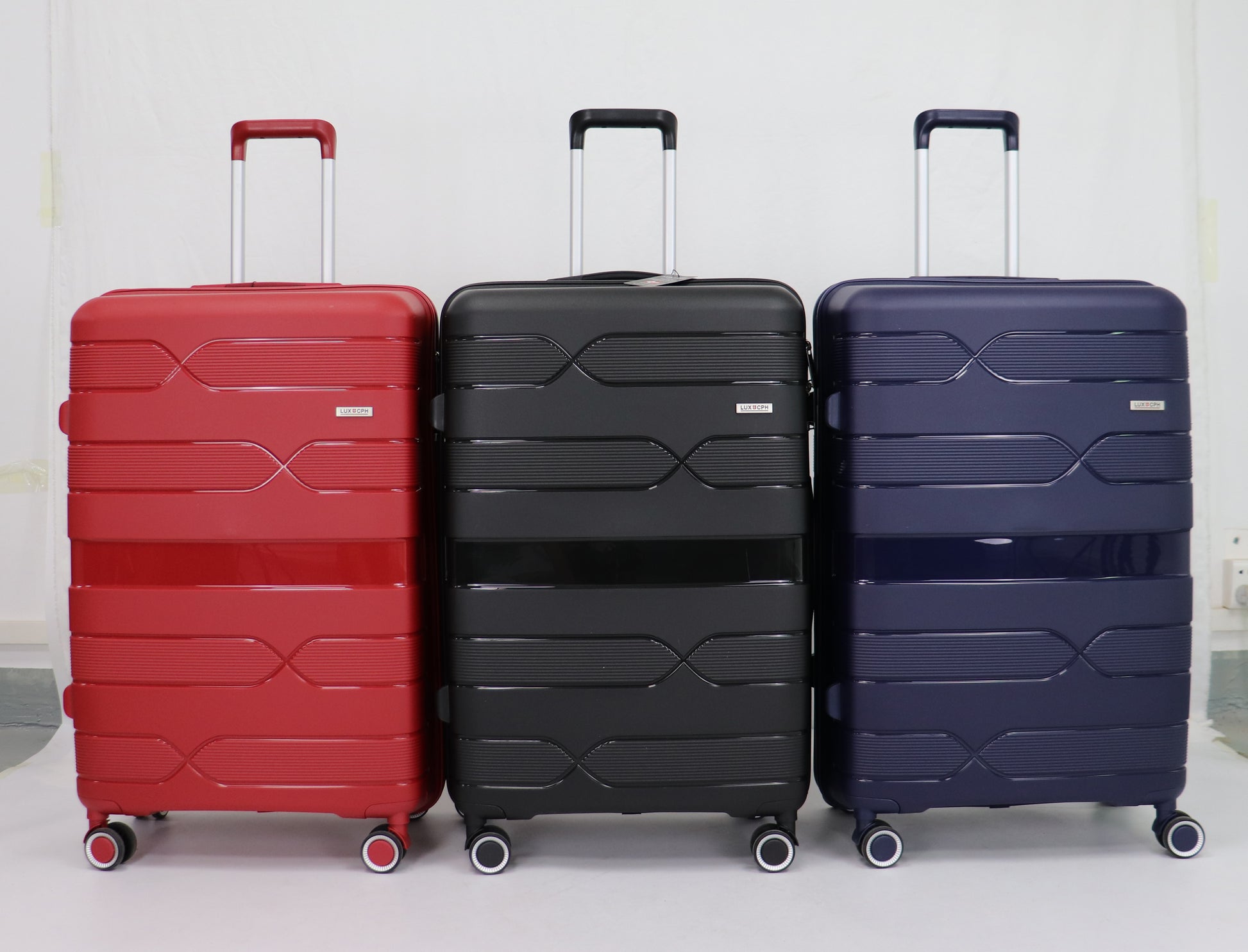 Alla tre resväskor är tillverkade i slagtåligt PP-material och utrustade med förstärkta hjul, tystgående kullager och ett solitt teleskophandtag i aluminium.